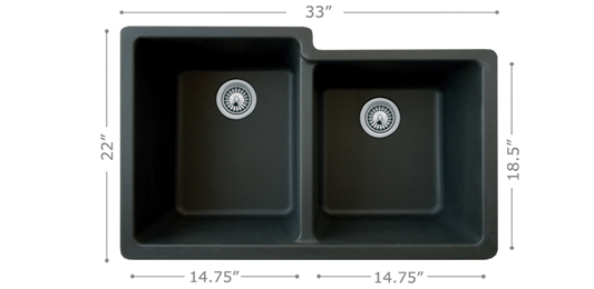Our quartz sinks are made from up to 85% quartz (the hardest constituent of granite) and premium acrylic resins. The material is tougher, shines with intensity of color, and is considerably easier to clean than other sinks. All of our quartz sinks are food-safe, UV-stable, and finished with Antibac. This natural, antibacterial hygiene protection system inhibits approximately 95% of bacterial growth.